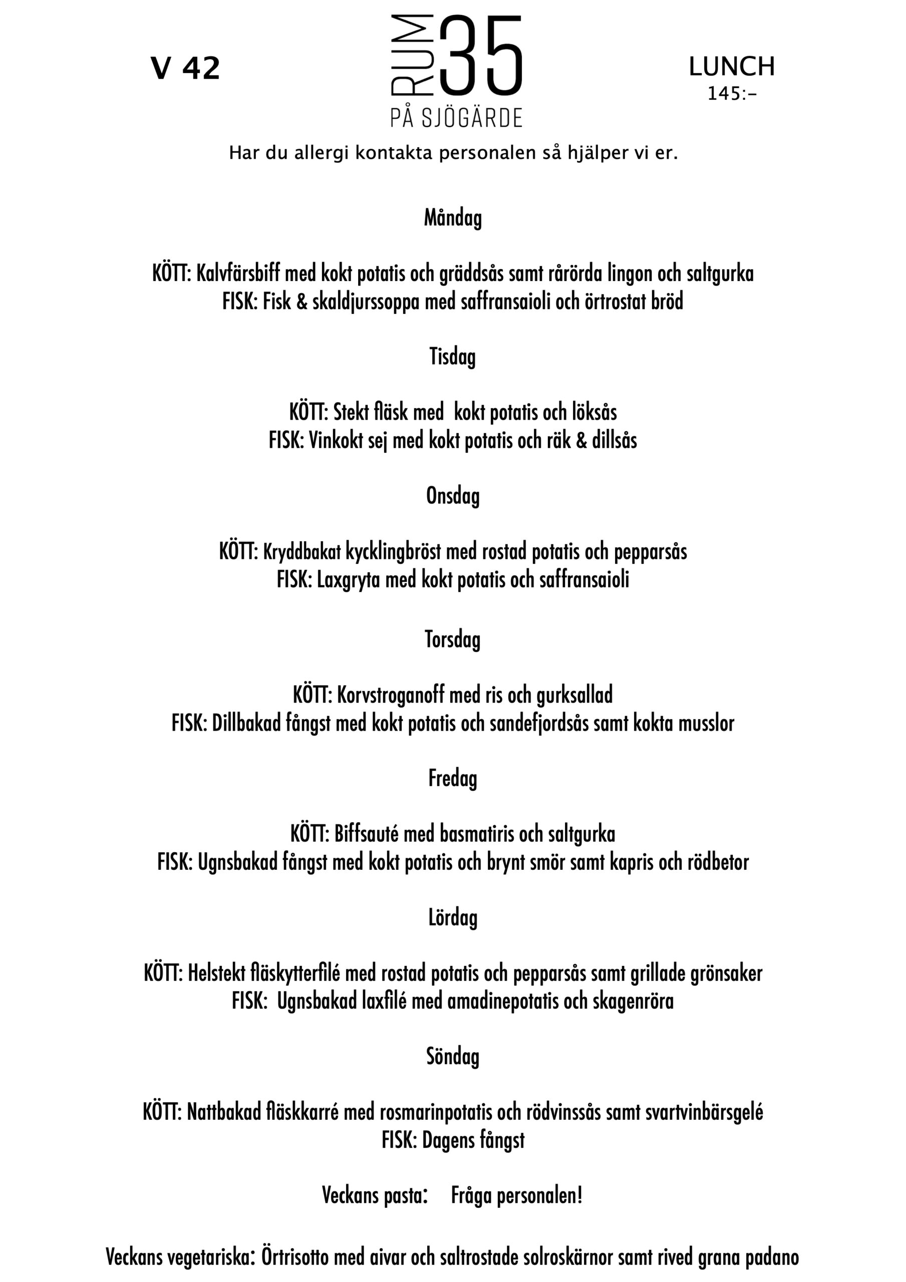 Nskar ni att ha en fest eller catering så kan ni maila oss på sjogarde@rum35.com